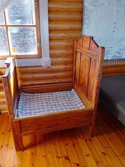 Talonpoikaissänky, jatkettava lastensänky, puinen ruskea