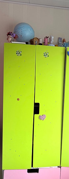 IKEA lastenkaappi vihreä vaatekaappi hyllyillä ja laatikoilla