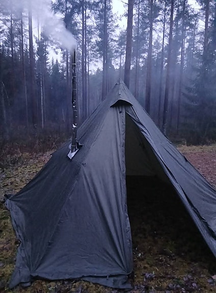 Helsport Finnmark 6-8 kotateltta ja GStove Heat View kamiina varusteineen