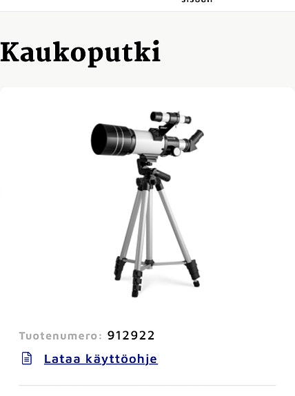 Löydä kaukoputki tai kiikarit helposti netistä! Torissa on tällä hetkellä 1 007 ilmoitusta, joissa myydään tai ostetaan kiikareita ja kaukoputkia.