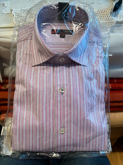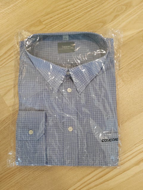 käyttämätön kauluspaita paketissa, suomalainen työvaatemerkki