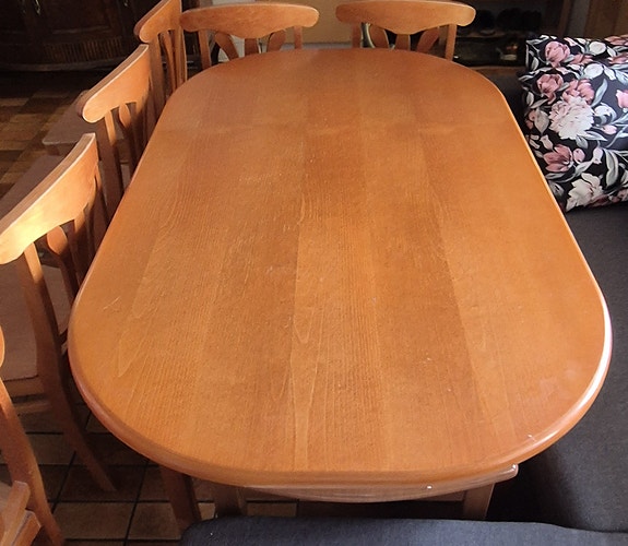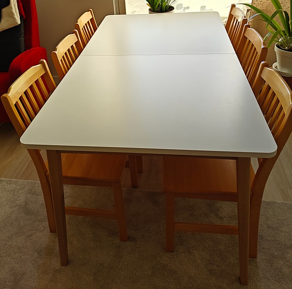 Ruokapöytä jatkettava ja 6 tuolia