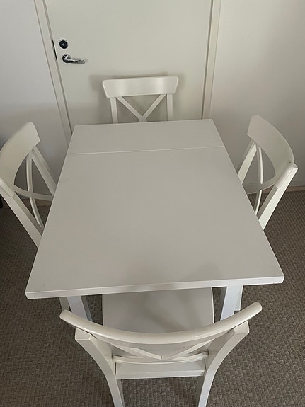 Valkoinen ruokaryhmä (pöytä + 4 tuolia)