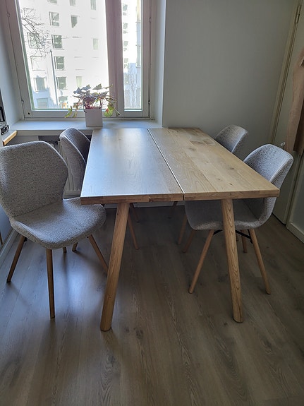 Laadukas ruokapöytäryhmä neljällä tuolilla.