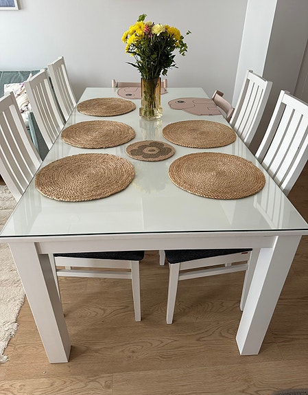 Siirry hakutuloksiin(Varattu) Lasinen ruokapöytä