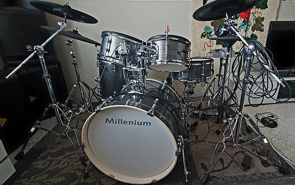Millenium MPS-150 setti -- Sähkörummut kuulokkeilla ja rumpujakkaralla