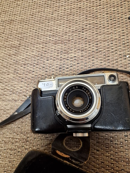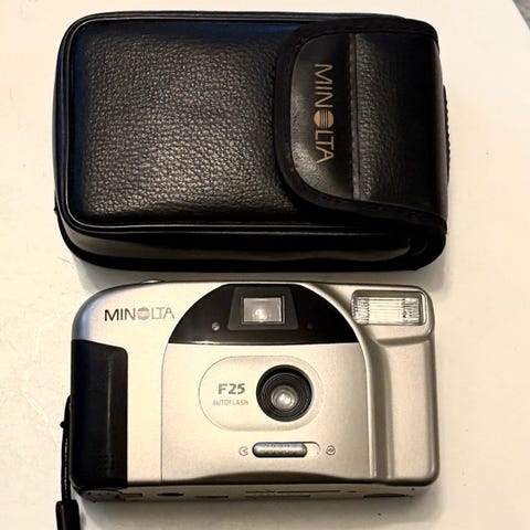 Minolta F25 -filmikamera suojakotelolla