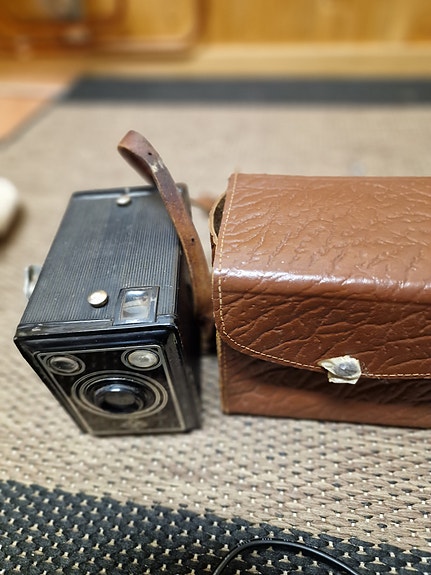 Agfa laatikkokamera ruskea nahkakotelo