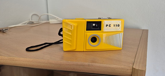 Pieni keltainen vintage-kamera PC 110
