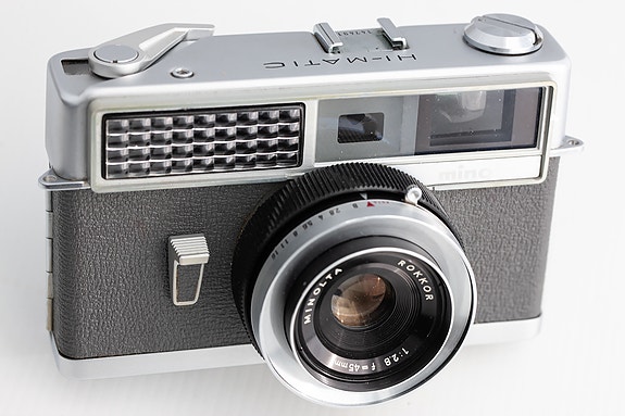 Minolta Hi-Matic filmikamera ruskealla kotelolla