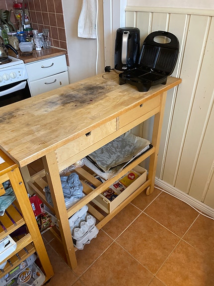 IKEA Kitchen trolley central counter // Puinen keittiösaareke hyllyillä