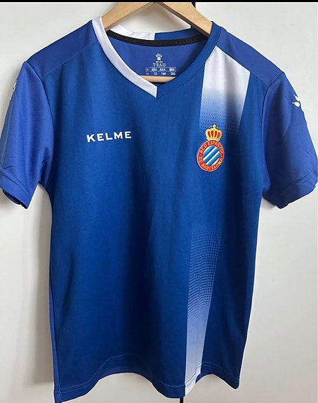 RCD Espanyol jalkapallopeliasu sininen ja valkoinen