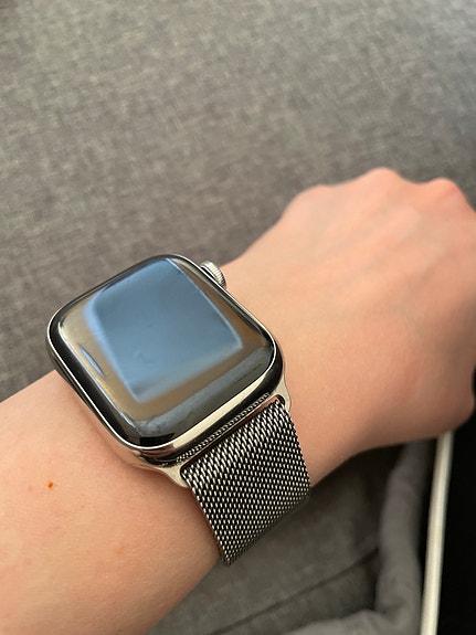 Apple Watch 6 gps+cellular 44mm teräsrannekkeella.
