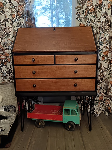 Vanha lipasto voi olla persoonallinen lisä muuten modernisti sisustettuun tilaan. Sama koskee luonnollisesti erilaisia hyllyjä. Käytettyjen kalusteiden tuunaaminen on monelle myös rakas harrastus tai mukava lomaprojekti.