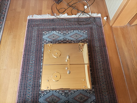 Kaareva kultareunainen takkaluukku