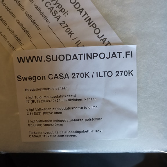 Swegon CASA 270K / ILTO 270K ilmanvaihtokoneen suodatinpakkaus 2kpl