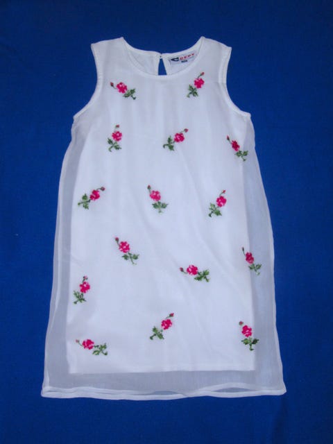 Mekko jossa ohueen päälimekko kirjailtu kukki 140-145
