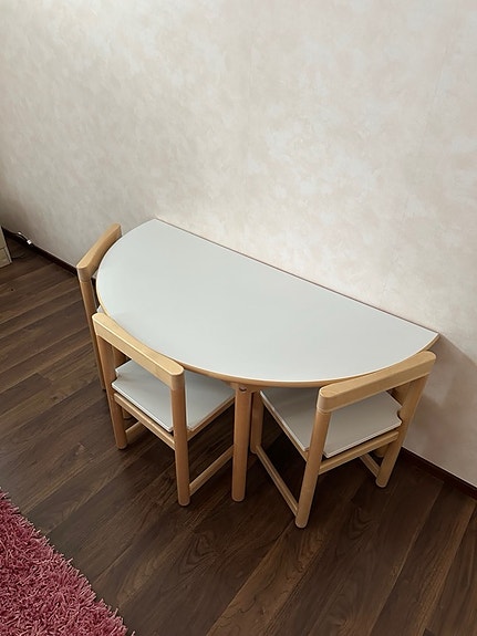 Jysky puolipyöreä pöytä ja tuolit