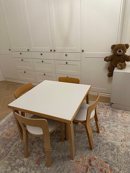 Artek lasten kalusteryhmä pöytä ja tuolit koivu ja valkoinen
