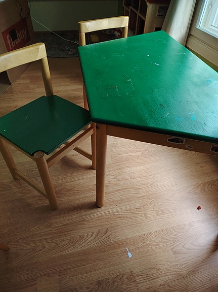 Lasten pöytä ja kaksi tuolia