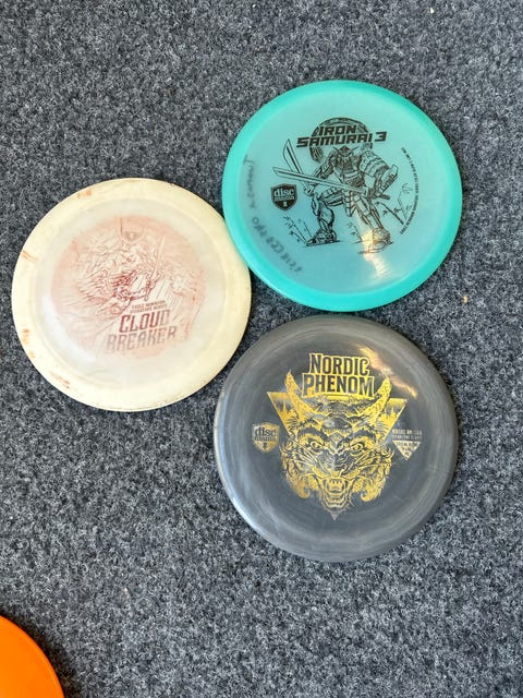 Discmania Cloud Breaker, Iron Samurai 3 ja Nordic Phenom frisbeegolf-kiekot