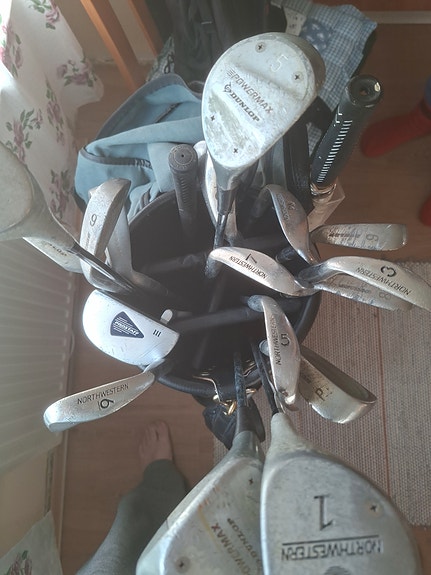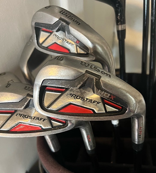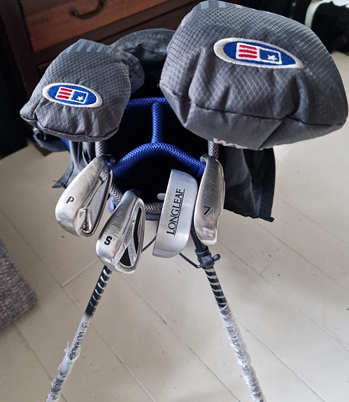 Titleist golfbägi ja Wilson ProStaff rautamailat