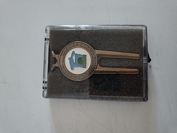 Golf griinin korjaustyökalu metallinen logolla