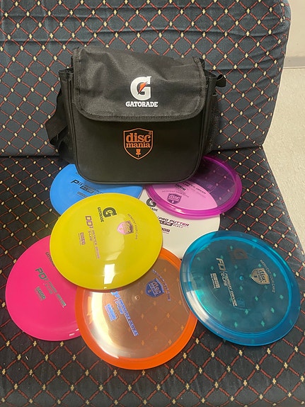 Discmania Gatorade frisbeegolfsetti kiekot ja olkalaukku