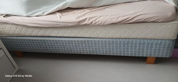 Hyväkuntoinen sänky: runkopatja + petauspatja 120 x 200