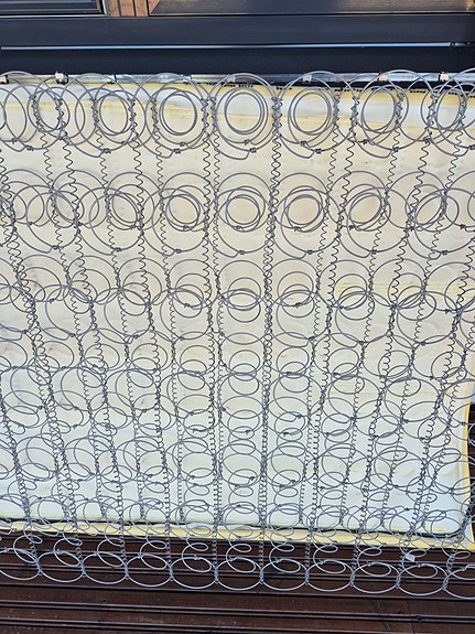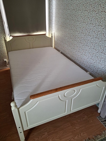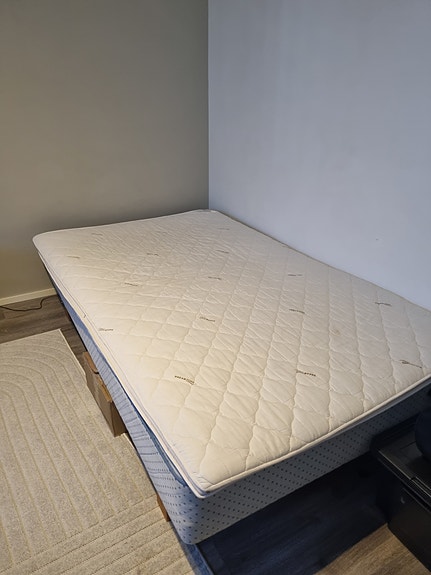 Bed with frame mattress, along with top mattress.