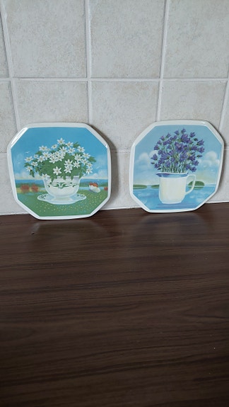 Seinälautasia käsinmaalattuja.Ehjä kuntoisia.