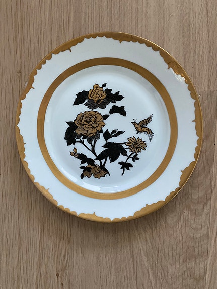 Iittala lautanen kukka- ja lintuaiheinen valkoinen/kulta
