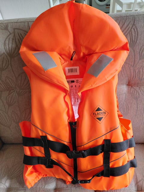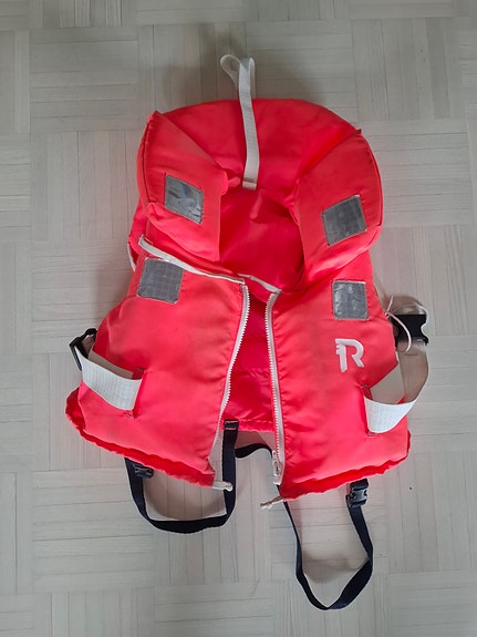 Rouhetäytteinen pehmeä pelastusliivi koko M, 50-70 kg. Käyttämätön.