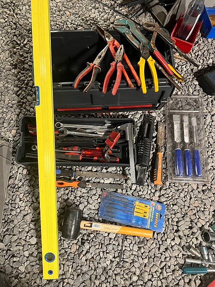 Sekalainen kasa työkaluja ja pakki