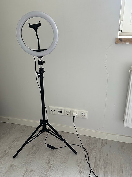 Rengasvalo jalustalla ja puhelinpidikkeellä