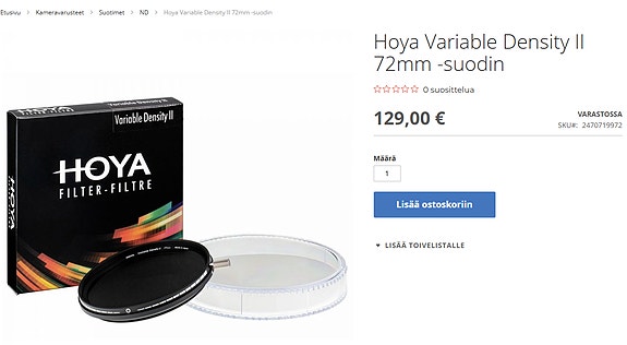 75 €Hoya Variable Density II 72mm ND suodin.Sipoo, Sipoo, Uusimaa3 pvOsta hetiLiikkeessä oleva kuorma-autoToriDiiliLisää suosikiksi.Avaa ilmoitus