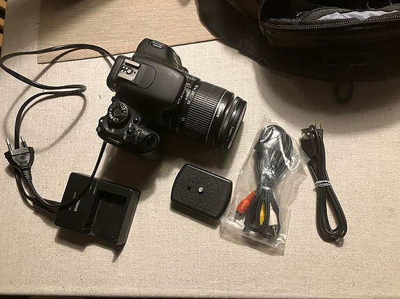 Canon EOS600D + EFS 18–55mm + kolmijalka + laukku