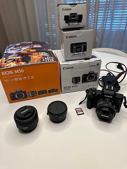 Canon EOS M50 kattava kamerasetti - 2 laatuobjektiivia, tarvikkeet - KUIN UUSI!