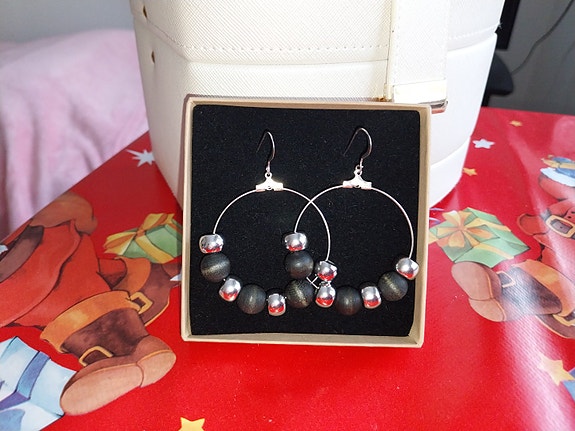 Korvakoru 50-luku aito puuta musta klipsi vintage