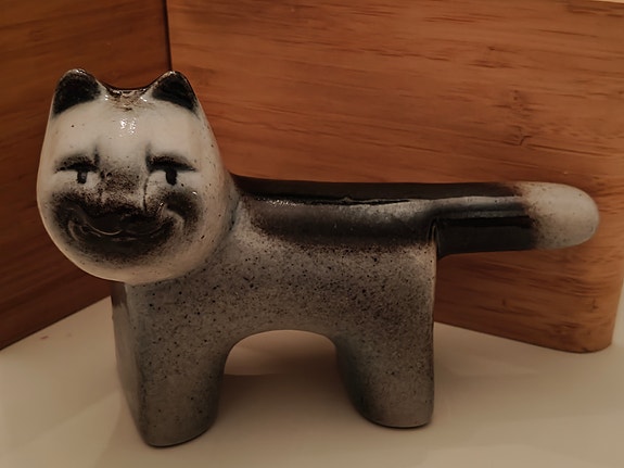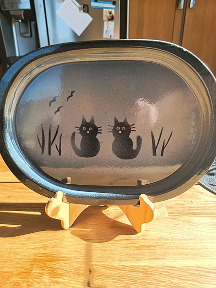 Keraaminen kissatarjotin soikea harmaa-musta