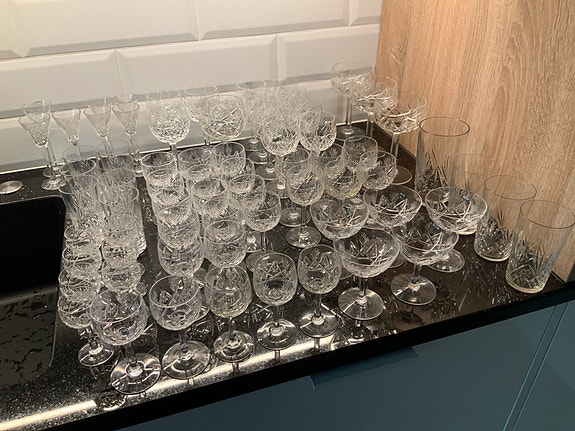 Juomien tarjoilusetti, boolimalja ja lasit