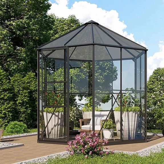Outsunny Puutarhapaviljonki 3,3 x 3,3m Pop-Up Rungolla, Beige