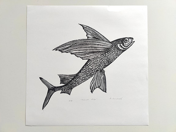 Amy Cundall - Flying Fish (linoleikkaus)