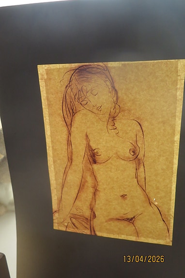 Grafiikan vedos Prahasta "Nude" - alaston nainen