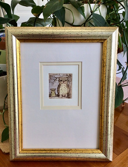 Pöllöaiheinen taulu kultakehyksillä