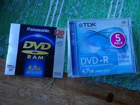 Panasonic DVD-RAM 4,7 GB levy ja TDK DVD-R 4,7 GB 5 kpl levypakkaus