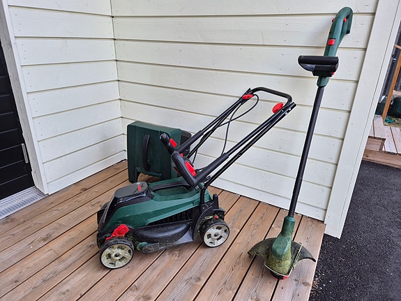 Bosch akkuruohonleikkuri ja -trimmeri