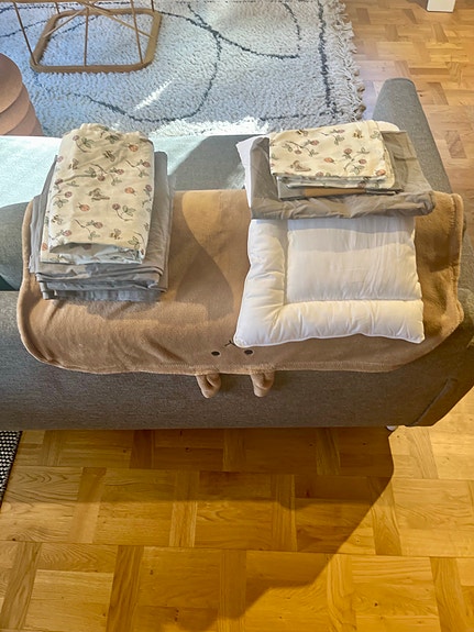Pauline -pinnasänky + juniorilaita + tekstiilit