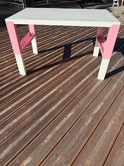 IKEA lasten pöytä valkoinen vaaleanpunaisilla yksityiskohdilla