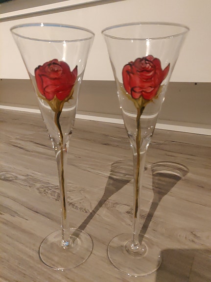 Käsinmaalatut isot kuohuviinilasit 2 kpl